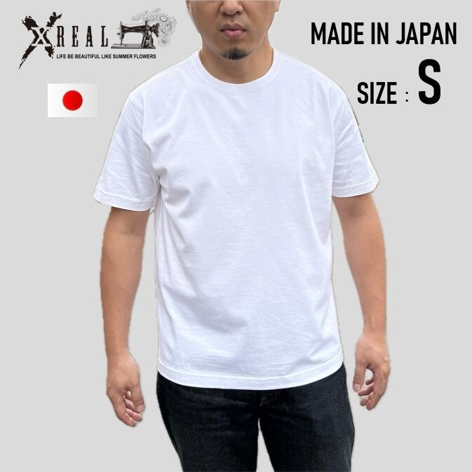 日本製 Tシャツ 無地 XREAL 定番 超ハイゲージ生地 白 S 高密度 ハリ 光沢 業界初の縫製方法 ワンウォッシュ 洗濯タグ類なしで低刺激