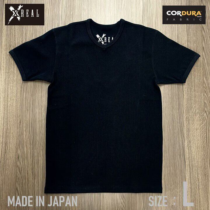 Tシャツ 日本製 超厚手 無地 XREAL コーデュラCORDURA® 生地 黒 L スリムタイプ ヘビーオンス アメカジ アウトドア 洗濯タグ類なしで低刺激