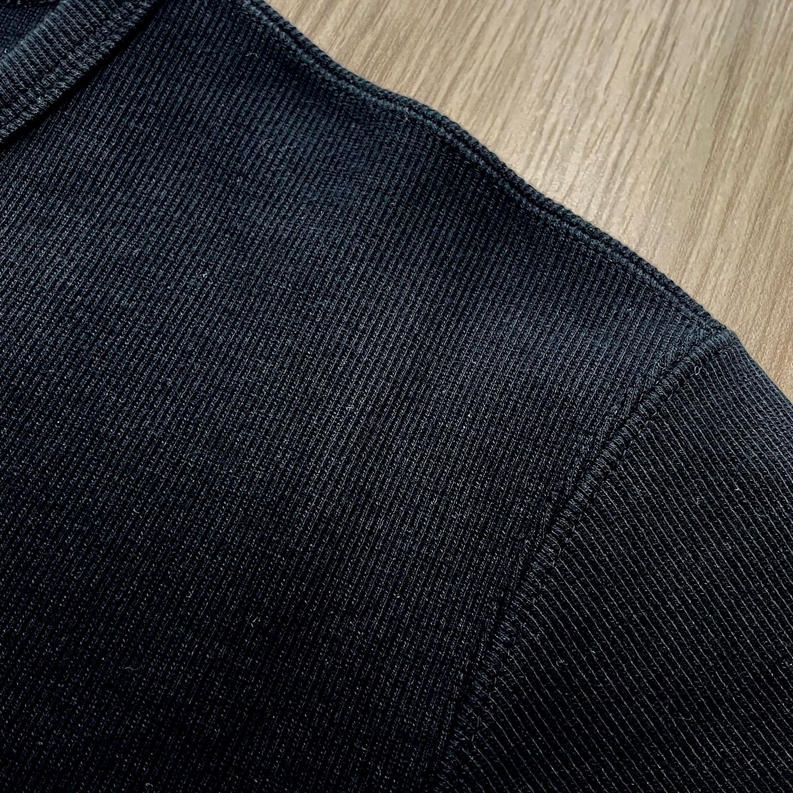 長く使ても綺麗な状態を保つために、衿、肩、アームホール、袖口、ボディの両サイド、裾をすべてダブルステッチで仕上げています。